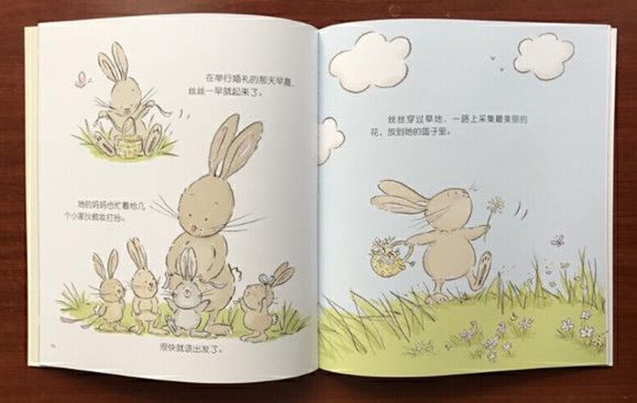 小兔丝丝还小,做不了新娘,但她做了一次美美的伴娘。小伴娘是美丽的!她穿着漂亮的礼服,系缎带的鞋,耳朵上还有漂亮的花环。小伴娘是做美好的事情的!她提着装满鲜花的小篮子,走在新娘的面前撒花,为新娘跳舞……糟糕,新娘的戒指去哪里啦?