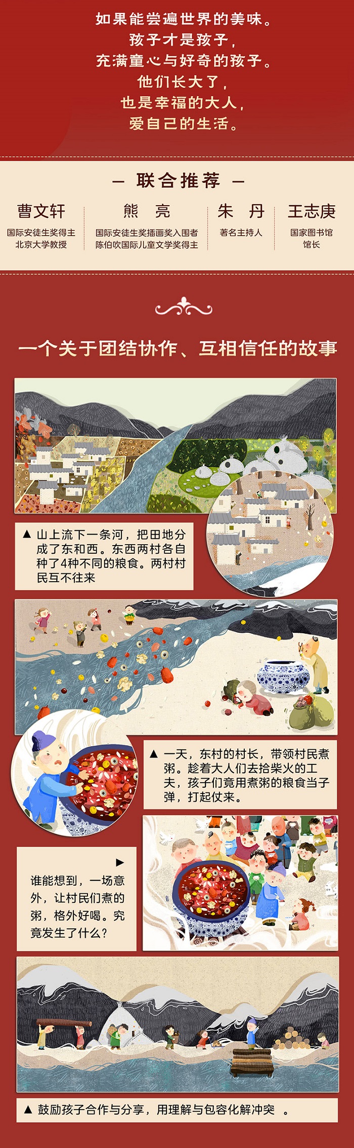 如果能尝遍世界的美味。 孩子才是孩子,充满童心与好奇的孩子。 他们长大了, 也是幸福的大人, 爱自己的生活。这是一套给3-6岁孩子的中国美食绘本,共6册。它们讲述的都是中国特有的美食,每个食物都有一个动人的故事。这套书将中国传统的饮食文化用全新的故事演绎,充满想象、欢乐,孩子们读过之后会对这些吃的感兴趣。这套书的内容涵盖南北饮食。每本书中都有一个实操的食谱,阅读之后,孩子们还可以和家长一起动手做起来。书后还有每种食物的来历,不知不觉中,增加了孩子的知识量。