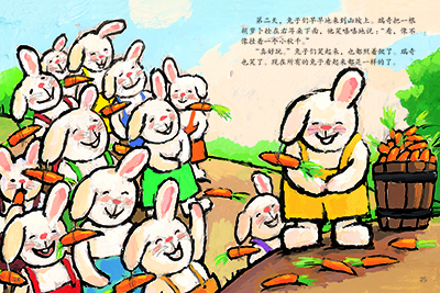 因为有着与其他兔子“不一样的耳朵”,瑞奇的苦恼开始了。他想尽办法让自己耷拉的耳朵“直立” 起来,用胡萝卜塞、用绳子捆、用钓鱼竿拉……可是每一次的尝试都是以失败告终,瑞奇很不开心。这时,一位“神奇” 的医生给他开了“药” 并说了一句话,结果瑞奇开心地离开了……