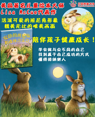 安静的班尼兔和森林音乐会》一只可爱的安静的班尼兔,他无法发出声音,无法参加森林的夜晚音乐会。他努力学习其他动物的声音,但都没有成功,最后他找到了发出自己声音的方式——用大脚敲打出节奏,并以此获得了其他动物的认同。