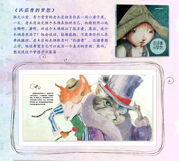 很久以前,有一个贫穷的老木匠叫杰佩托,他独自住在一间小房子里。老木匠觉得很孤单,有一天,他决定做一个木偶来陪伴自己。老木匠特别用心地去雕啊,磨啊,他对这个木偶倾注了很多很多爱,最后,这个木偶居然活了!他会说话会唱歌,能蹦能跳,不需要任何人来牵线操控。老木匠给木偶取名叫“匹诺曹”。匹诺曹想上学,不仅如此,他还希望自己可以成为一个真正的男孩。最终,匹诺曹的梦想能实现吗?