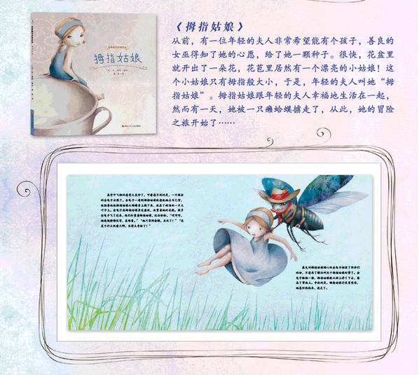 从前,有一个女人独自住在一所漂亮的房子里,她特别渴望能有个孩子。一天,巫婆给了她一颗种子,告诉她把这颗种子种在花盆里,她的愿望就能实现。几天之后,这颗种子开出了一朵美丽的花,女人仔细打量这朵花,发现花蕊中竟然有一个漂亮的小姑娘!这个小姑娘跟拇指差不多大,于是女人给她取名叫“拇指姑娘”。女人把拇指姑娘当宝贝一样对待,她们幸福地生活在一起。然而,好景不长,有一天,癞蛤蟆把拇指姑娘掳走了,她想让拇指姑娘嫁给自己的儿子。从这时起,拇指姑娘的命运一波三折,她先是被小鱼们救了,然后又遇见了蝴蝶、金龟子、鼹鼠和燕子。最后,她遇到了一个跟自己一样大小的英俊的王子……