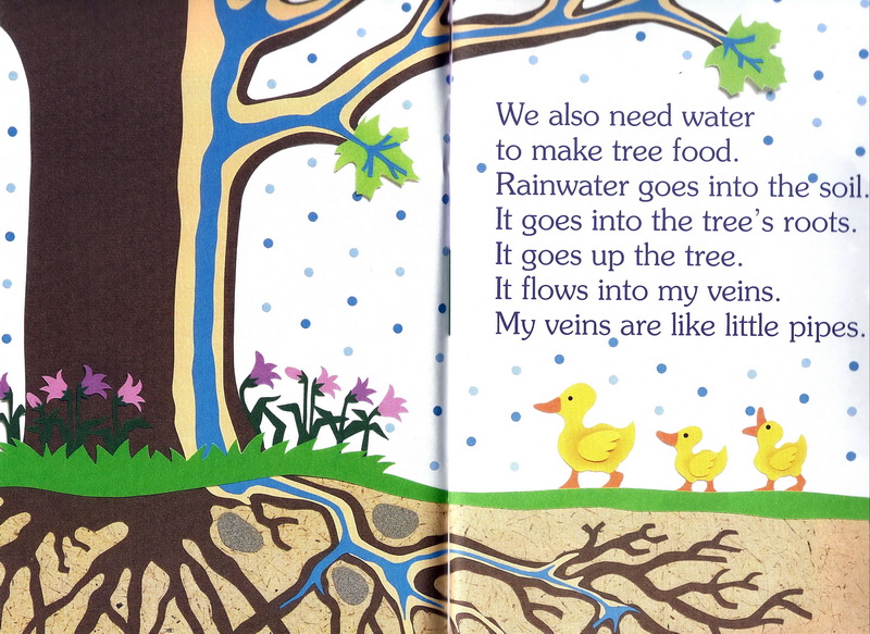 从《i'm a seed》, 《i am an apple》,《 i am a leaf》,《i'm a caterpillar》 这四本图画书中,可以看到熟悉的植物、昆虫,进一步里欧阿姐到种子、苹果、树叶和毛毛虫的生长过程与循环周期、树叶进行光合作用需要哪些元素,从中学到的,不仅是如何将动植物现象用英语表达,还学会不少动植物的正式用词,如chlorophyll(叶绿素)、bud(芽)、stem(茎)、petal(花瓣)、pupa(蛹)等等。