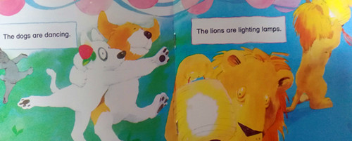 语言学习:本级图书每页以一个简短的句子为主,通过一两个单词的替换,使句型得以不断的重复。
