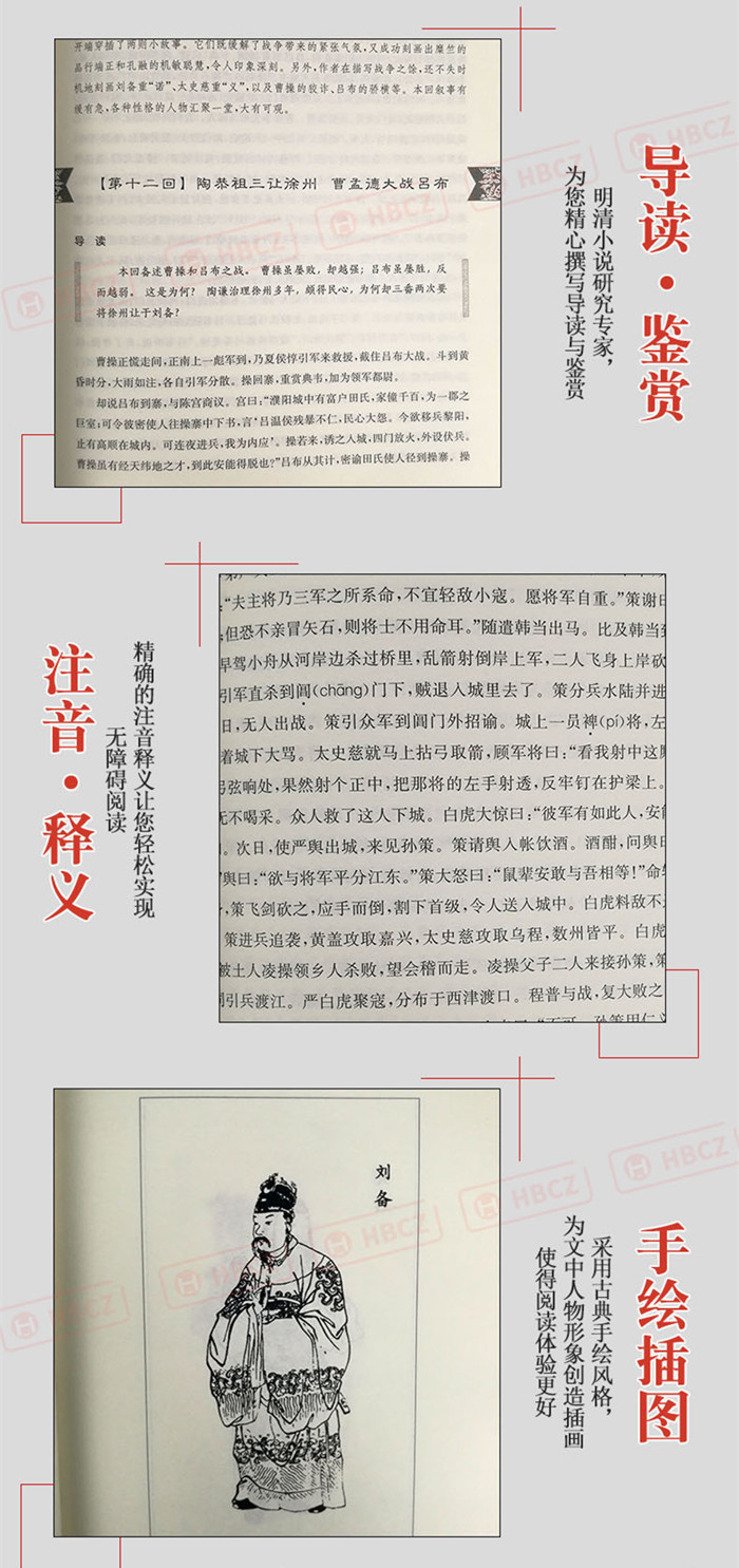 罗贯中著,乔光辉主编的《三国演义(四大名著阅读指导版上下)/亲近母语》描写了从汉灵帝到晋武帝之间共一百多年的历史,用宏阔有致的笔触勾画出魏、蜀、吴三国互相征战争雄、兴衰存亡的历史过程,是一部历史演义的典范。本书以毛氏父子的《三国演义》为底本,参考《三国志》《后汉书》《三国志注》进行了勘校。在书中我们精心撰写了导读鉴赏。特意选取一些经典回目、转折性事件,从事件本身、叙事手法、艺术角度等方面入手,作重点赏析,引导读者对《三国演义》有一个更高层次的把握。另外为了阅读顺畅,文中对部分易读错的字添加了注音。