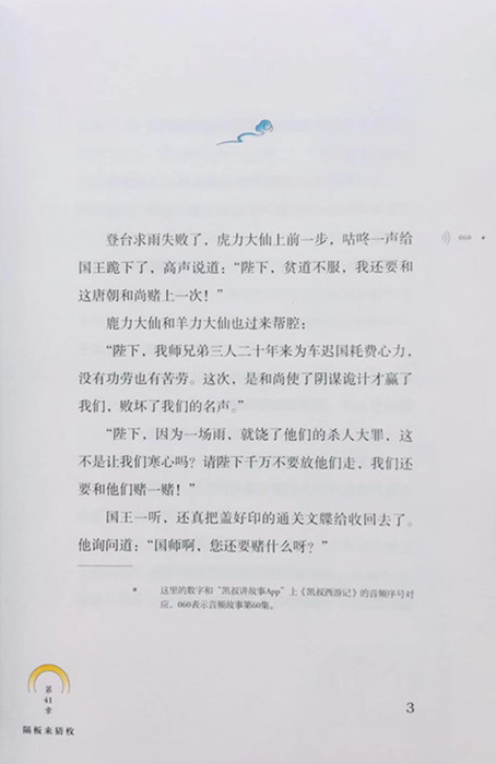 本系列是新一代故事大王、前CCTV主持人、小说演播艺术家凯叔,历时三年,为孩子精心打造的西游记。故事吸取评书的表现手法,构思精巧,使情节起伏、人物入木,既精彩幽默又亲切易懂,引人入胜;全书含大师精美配图超过200张,四色高品质印刷,形式新颖,充满童趣,为孩子演绎中国味的奇幻故事。