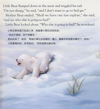 经过一整天的雪地探险,小熊该睡觉啦。可是他还不觉得困呢!于是熊妈妈又带着小熊出去散步,看看别的小动物是怎样准备睡觉的。这样,小熊会觉得困吗?他会乖乖地去睡觉吗?