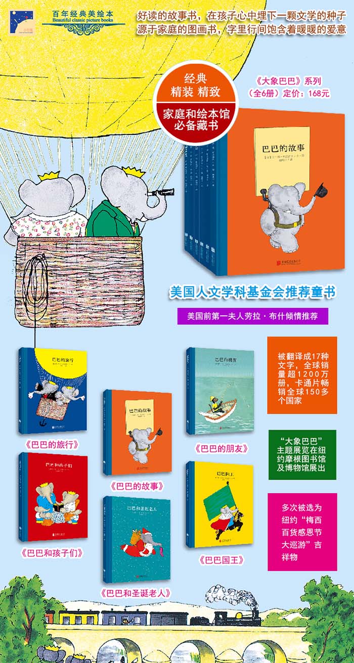 巴巴系列图书把读者带到一个快乐、友爱、乐观的世界。作者用简单的文字讲述了一个内涵丰富的故事,让孩子们在大象巴巴的世界里畅游。巴巴系列图书一直备受西方父母的钟爱,是孩子们最佳的睡前读物。