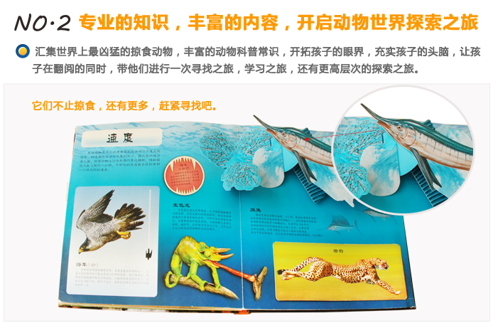 2.直观的立体参与感与体验感,知识性与趣味性的完美集合,让孩子动手去了解这些地球上凶猛的掠食动物。