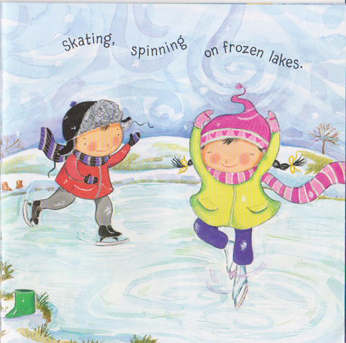 Lacy trees, hills of white, sledding, snowmen, snowball fright.