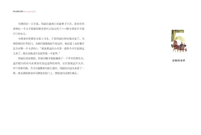 “我在哭,”安妮用一种着慌的口吻说,“我也不明白为什么。我高兴得没法儿再高兴了。哦,高兴这个词压根儿不合适。我曾为白色的道路和鲜红色的花朵感到高兴—可是这不同!它远远胜过高兴这个含义。我真是幸福。我要争取做个很好的孩子。我想,这是一件艰难的任务,因为托马斯太太一再对我说,我是个坏透了的孩子。不过,我会尽力去做。可是,你能告诉我为什么我在哭吗?”