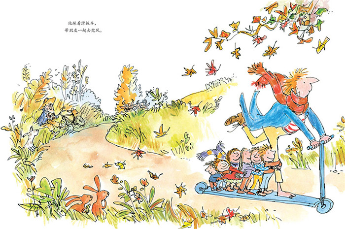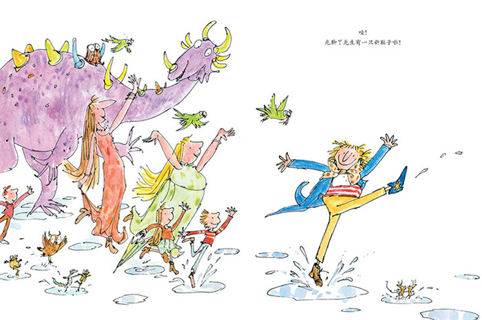 (3) 昆廷的画是吸引无数孩子进入充满快乐和想象力的阅读世界的开放性邀请。他是知名儿童文学大师罗尔德•达尔御用插画师,被誉为给达尔的故事赋予生命力的杰出插画家。