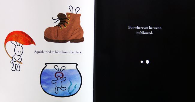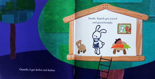 Squish Rabbit is a very small rabbit, and he’s afraid of lots of things. Like storms. And chickens (you would be too, if you were small!). And the dark. Especially the dark. But when he goes to meet his good friend Twitch the squirrel one evening, he can’t find her. She’s missing! And it’s getting dark! Squish knows he must be brave to find her, but it takes all of his courage . . . to discover that the dark can be magical, especially when filled with stars.