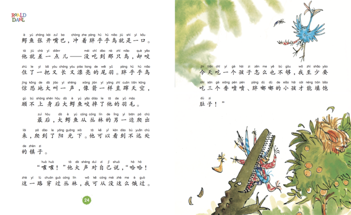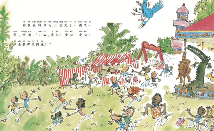 罗尔德·达尔,善于创造异想世界里的奇特形象,喜欢讲述令人拍案叫绝的魔法故事,是了解孩子内心世界的奇幻文学大师。“奇幻故事系列”,更加适合小学低年级读者阅读,书系由世界插画大师昆廷•布莱克绘制插图,让小读者在阅读中不仅能够为故事所吸引,同时也能感受到绘画艺术的魅力。《巨大的鳄鱼》讲述了一只一心要吃掉小孩的鳄鱼屡败屡战的幽默故事,鳄鱼的狡诈与其他动物和孩子们的机智形成有趣的对照,带给小读者愉悦的阅读感受。