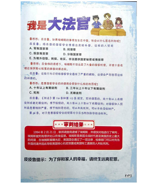 《皮皮鲁和419宗罪小侦探大百科》系列丛书为孩子们准备了有趣的法律知识,每一章十个栏目,想象十足、趣味十足的为孩子们讲解法律知识。孩子们通过漫画故事,生动的了解犯罪的心理和过程;通过阅读百科栏目,了解法律常识;舌战即辩论让孩子们学会从不同的角度思考问题;大法官则是为孩子们量身定制的模拟法庭,让孩子们自己当法官,判断是非对错;有趣的侦探游戏还可以锻炼孩子们的逻辑推理思维,给孩子们带来快乐而真实的体验。