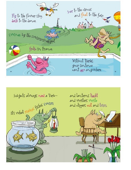 “穿着鲜艳的语法怪兽尽管有时候会手忙脚乱,但它们总能够有条不紊、清楚明白地告诉我们动词是什么,并举例说明动词在句中的功能。文中用彩色突出了所有的动词,读者将被文中富有韵律的文字和夸张的幽默所吸引。”