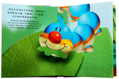 本图书获得2007~2008年度最佳创意少儿图书奖,小巧的开本,保留大虫子的力图制作效果,更适合宝宝翻阅,培养学习主动性;绚丽的色彩,三维立体图像,给宝宝最大的视觉冲击力,刺激宝宝视觉能力发展;朗朗上口的儿歌,便于宝宝背诵记忆,中英文双语对照,让孩子在自由轻松的学习环境中接触英语,开发语言潜能