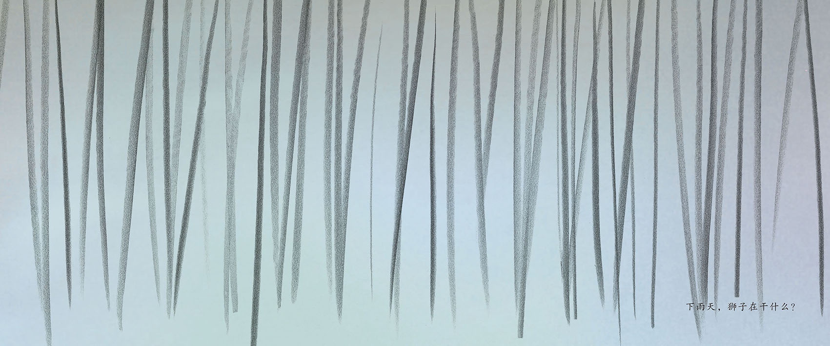 “提问回答”的游戏正好借着文图展开。循着孩子的阅读顺序,他们会先看到画面,并发出第一次疑问或者疑惑(雨?这些线条是雨吗?),看到文字或者听到大人朗读后就形成真正的问题,从而设定了“提问回答”的游戏方向。只是,书中的答案却毫无道理可言,稀奇古怪——那是作者假托书中隐藏的阅读者(封底上依偎在妈妈身旁的小男孩)给我们的一个示范而已,我们明白了这一层,就一定要包涵和赞赏孩子的各种答案。