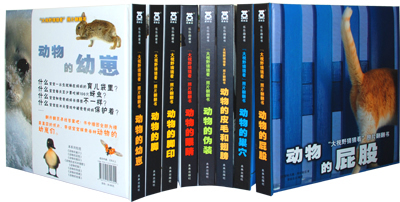 大象大象的体形庞大,圆柱状的四条腿宛如石柱一般。当大象将前腿抬起保护平衡时,每只作为支撑点的脚都要承受超过2吨的重量。当大象跺脚时,很远处的象群都会感觉到地面传来的震动。——节选自《动物的脚》园丁鸟这个美丽的小亭子是园丁鸟的爱巢,是雄性园丁鸟用6000多根小树枝搭建而成的,周围还放有一些五颜六色的小物件来装饰点缀。漂亮的巢使雄鸟赢得了雌鸟的青睐,之后他们便在这里交配。不过交配后,雌鸟就会转移到另一个隐蔽的巢里去产卵。——节选自《动物的巢》马马的眼神中总是带着一丝不安和焦躁,长在脑袋两侧的两只大大的眼睛能在第一时间察觉到危险。马的两眼的可视范围为330°-360°,能准确的估计外在物体的位置和距离,而且视网膜的感光力强,在夜间也能看到周围的物体。——节选自《动物的眼睛》