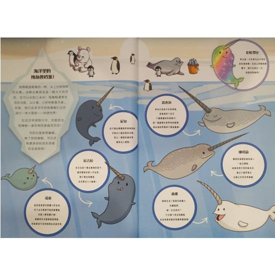 本册书把独角鲸拟人化,让小朋友们找独角鲸。独角鲸是鲸鱼的一种,头上长有独特的尖角。这根尖角其实是一颗大大的牙齿,足可以长到三米长!独角鲸通常生活在北极,以小鱼小虾和鱿鱼为食。但是,我们这本书中的独角鲸们正在进行一场大冒险——环游世界!他们的旅程从博物馆到水上乐园、从热带沙滩到冰雪世界、从海边到城市中心,大家玩得开心极了,快来加入他们的环球之旅吧!在这次环球旅行中,你能找出独角鲸一家所有的家庭成员吗?书的后面有答案喔。除了找独角鲸,书后还有更多好玩的东西等你去发现呢!