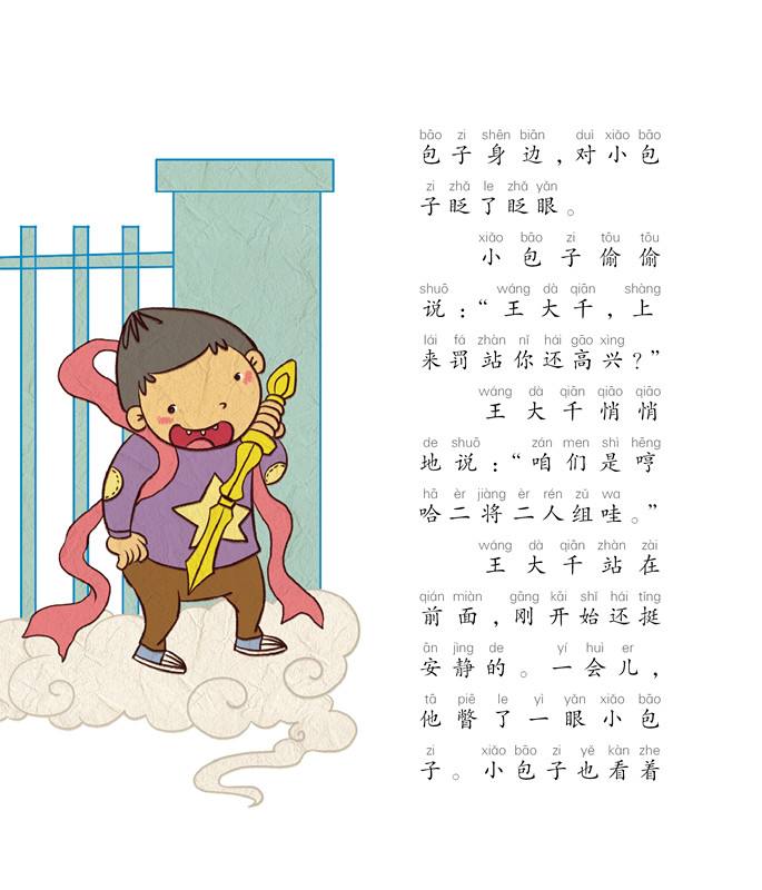 小包子上一年级了,他有许多有趣的小伙伴——死党王大千、娇滴滴的同桌林鸟鸟、顶着一头卷发的米花同学……他们在一起热热闹闹的开始了一年级的学习生活!当然还少不了本领高强的孙悟空老师,在孙悟空老师的见证和陪伴下,小豆包们渐渐成长。你想知道,小包子的裤子为什么哭了吗?林鸟鸟又为什么会叫林尿尿?小包子当魔术师为什么会露馅儿?汪汪合唱团又是怎么回事?快来看这本书吧!
