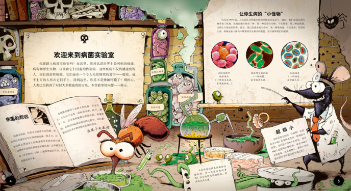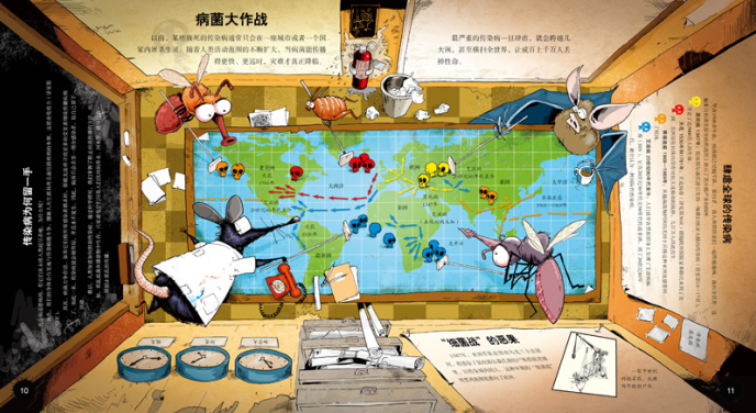 这是一本会“传染”的科学怪书!那些传播流行病的动物和昆虫穿上白大褂,走进实验室,为大家讲述致命传染病的可怕故事,破解百变病毒的死亡魔咒! 从黑死病到肺结核,从霍乱到流感,这些让人不寒而栗的疾病杀死了成千上万的人。它们像阴魂不散的死神,飘荡在人类历史的各个时代。本书将带你探索历最可怕的传染病,体验那些荒唐的治疗方法,并见证人类是如何一步步地将这些不得了的病菌一一打败…… 也许你得戴着口罩读完整本书,但书中提到的一个个科学知识,像病菌一样飘散在书中的各个角落,一定会将你深深感染……