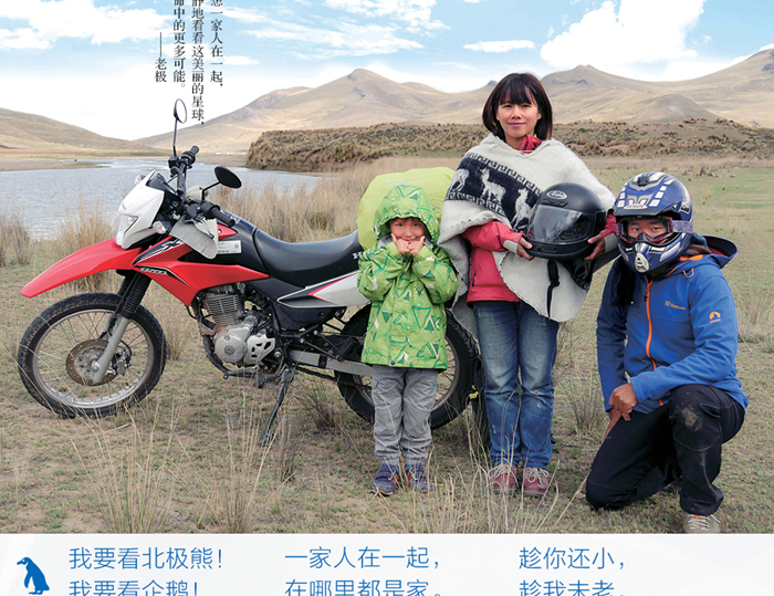 老极和小猪,原本是“铁钉”一族,可上天偏偏要塞给他们一个儿子辛巴。辛巴2岁时,有被绘本上的一头北极熊迷住了,于是,天天缠着爸爸妈妈要去看真正的北极熊。为了好好陪伴孩子,热爱旅行的夫妻俩从2014年11月,也就是辛巴3岁的时候起,一家人骑着三轮摩托车出发,历时、85天,途经]2个国家来到了白色世界北极看熊;又从2016年11月开始,辛巴5岁的时候,一家人再次出发,历时146天,纵穿整个南美洲,越过千年寒冰到达无限冷冻的南极圈看企鹅。这一路之上,每一次挑战、每一回喜悦、每一个问题、每一份收获都是无法预料且真实发生的。辛巴是迄今为止年龄很小、走得很远的一个中国小屁孩。小辛巴在行走的过程中,一路上看到了神奇自然界的千姿百态、人类世界的种种美妙风土人情。旅行路上,辛巴大大地开阔了眼界、富足了心灵、强健了体魄、锻炼了意志,辛巴在父母的陪伴下,在旅行路上快乐成长。老极一家的传奇经历被大量媒体一夜之间......