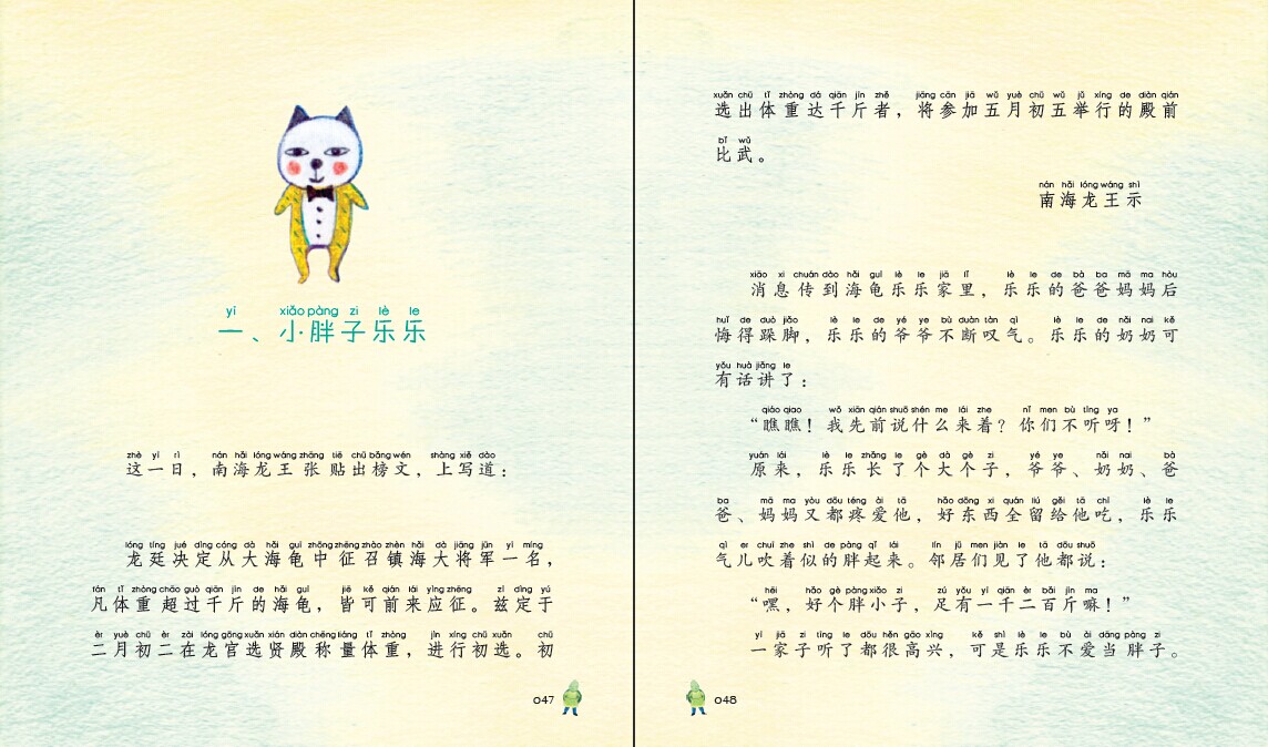 龙王贴出告示,二月初二征召镇海大将军一名,凡体重超过千斤的海龟,皆可前来应征。这可气坏了乐乐的奶奶,本来乐乐足有一千二百斤,结果爸爸妈妈非让他减肥,减肥成功的乐乐只有不到一千斤了,可怎么办呀?没关系,离二月初二还有一个月呢,乐乐天天吃巧克力和曲奇饼,趴在床上一动不动。到了二月初二,乐乐晃晃悠悠一上秤,哎呀!只差七钱!