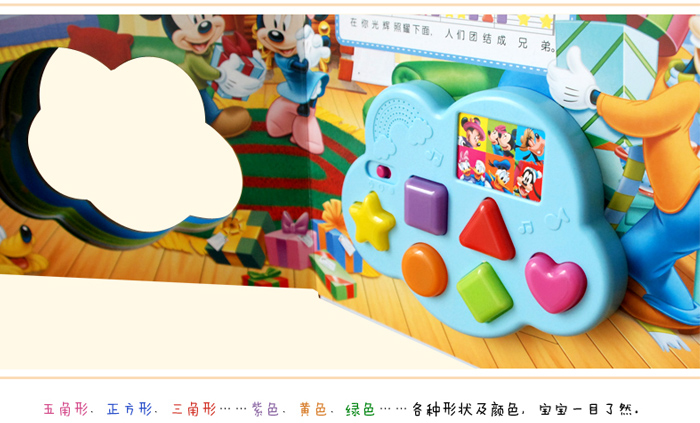 2、可爱的云朵形状玩具,色彩鲜艳的形状按键,炫酷的闪灯效果,刺激宝宝眼球,吸引宝宝注意力,让宝宝乐意去看去玩去学。3、大而稀疏的按键,符合1-2岁孩子手部粗大动作向精细动作的过度,让孩子能顺利完成弹奏,简单、易学,培养音乐素养的同时,更能帮孩子树立起自信心。4、分弹琴模式和打鼓模式。钢琴模式下孩子可以先听伴奏乐,然后**遍跟着闪烁的指示灯学弹奏,第二遍自己对照色块乐谱弹奏曲子。如果宝宝学完全部的10首歌曲,还可在此模式下自由发挥自创曲子。打鼓模式下,点击伴奏音乐按键,然后宝宝可以在6种乐器音效中任选一种或几种为歌曲伴奏。多样的玩法会让宝宝爱不释手。5、不仅是一本音乐启蒙书,还是一本颜色和形状的认知书、更是一本刺激小手发育,激发大脑聪明的益智书。