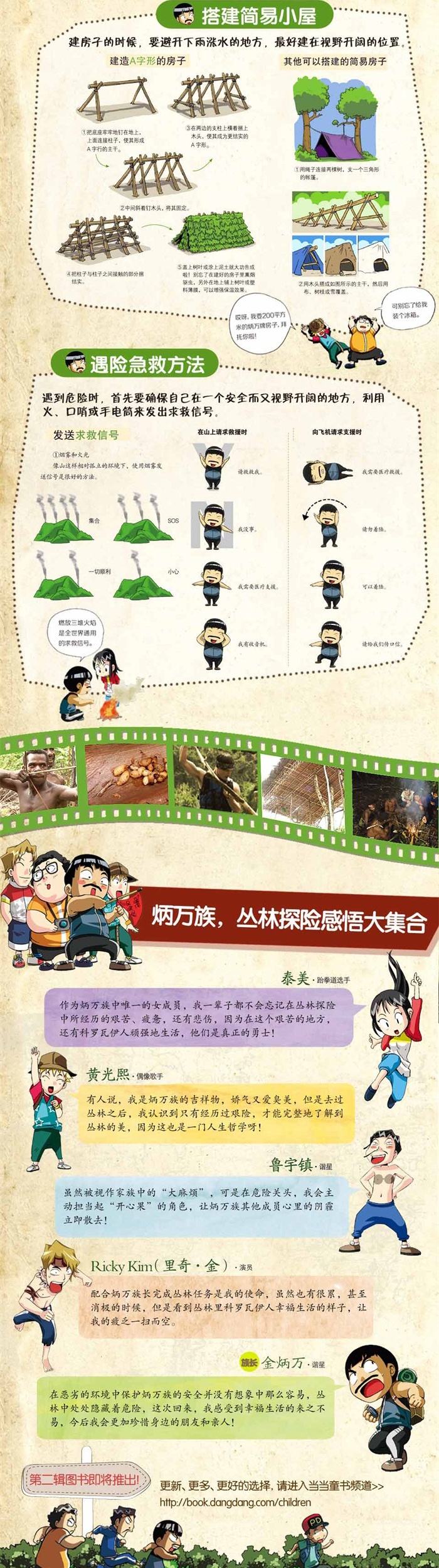 掌握野外求生的技能,了解风土人文、生态地貌,与原始部落和睦相处……这些还远远不够,还必须拥有强大的心脏和团队的凝聚力!每一次求生之旅,险象环生、囧态百出,让孩子们在惊叹和开怀大笑中,学会如何与大自然相处,如何与不同的文化相处,学会成长。你准备好了吗?和明星们一起出发吧!