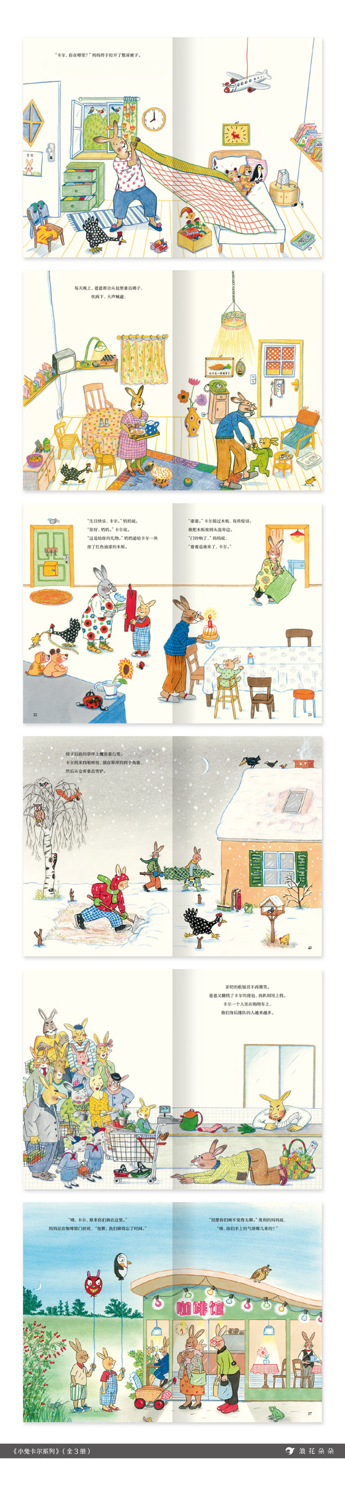 国际安徒生奖得主、《四季时光》作者,苏珊娜·贝尔纳的经典故事绘本。温暖、有趣的家庭互动小日常, 引导父母与孩子建立亲密关系,帮助孩子建立安全感,塑造良好性格,自信、勇敢地迈出成长的每一步。 ◎ 编辑推荐 ☆ 国际安徒生奖、格德林伦文学奖提名奖、德国青少年文学奖得主罗特劳 特·苏珊娜·贝尔纳经典绘本故事,和小兔卡尔一起感受家的温暖与家人的爱 罗特劳特·苏珊娜·贝尔纳是德国知名的绘本作家和插画家,获奖无数,在国际上享有盛誉。她总是以孩子般好奇敏锐的眼光,细腻而坦率地描绘和呈现生活本身。其作品构思巧妙、层次丰富、耐看耐读,既充满童趣,又具有艺术的张力、生活的洞见。除了《四季时光》深受儿童的喜爱,她的经典故事绘本系列“小兔卡尔”,也深深折服了全世界的孩子。在这套书里你会被温暖的文字所感动,被细腻的插画所吸引,体会到家的温馨和浓浓的亲情。 ☆ 家人之间的友爱互...