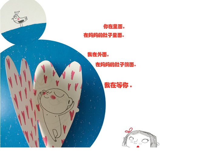 本书设计精妙,通过翻翻页的运用,让我们可以看见肚子里的宝宝。大宝和尚在肚子里的二宝尽管还隔着肚子,但我们能看见他们间的爱。
