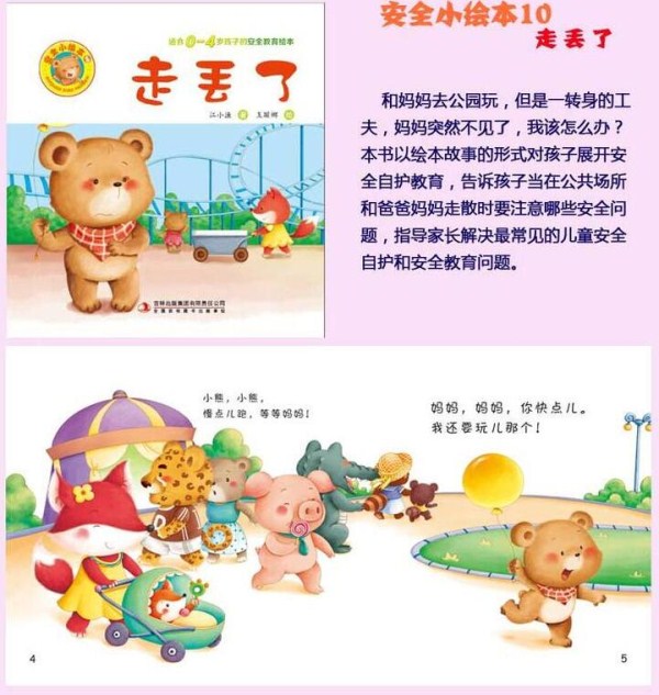 和妈妈去公园玩,但是一转身的工夫,妈妈突然不见了,我该怎么办?《走丢了(适合0-4岁孩子的安全教育绘本)》以绘本故事的形式对孩子展开安全自护教育,告诉孩子当在公共场所和爸爸妈妈走散时要注意哪些安全问题,指导家长解决常见的儿童安全自护和安全教育问题。