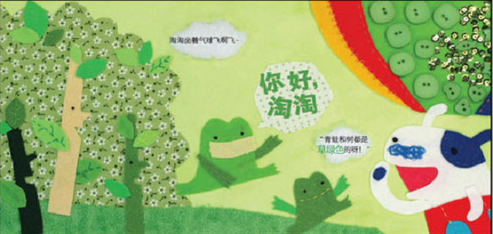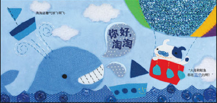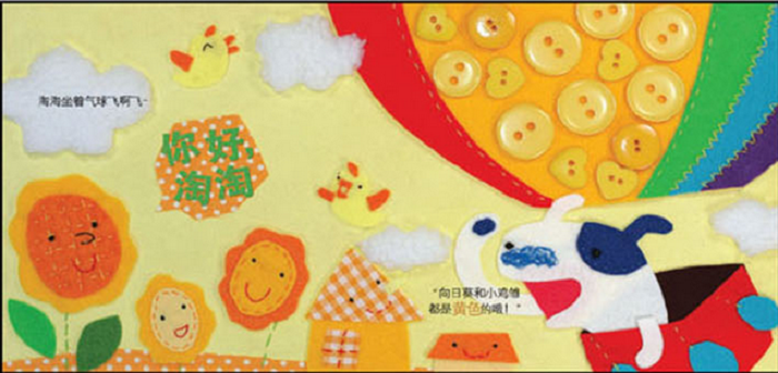 淘淘去旅行的过程中遇到了红色的苹果和瓢虫,遇到了黄色的向日葵和小鸡雏......