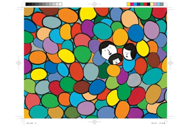 简洁、凝练的开场“那是一次可怕的事故,爸爸的车在空中翻了一大圈”,我们被文字的“淡”与画面的“浓”之间强烈的对比,带入这段不寻常的故事。文字未道尽的部分,画面做了接力。然而,画面亦未能呈现的部分,书外的我们,早已默契地懂得那些悄然发生的变化。母亲与孩子开始面对新的二元家庭结构,相对于日常对逝去的父亲的追忆,孩子的梦境仍是彩色的——那里有微笑的爸爸、妈妈、自己和五颜六色的漂亮气球;现实是暖色的——因为有了妈妈那句举重若轻的“没关系”。这一刻的接纳,何等重要!!从孩子单线条的陈述中“妈妈变得忙碌起来”、“每天天黑才回到家”、“我们俩要勇敢的走下去”……我们间接拼凑出一段文字背后的母亲,又岂止“勇敢”二字所能涵盖?在母亲和孩子两人登山并约定要勇敢走下去到他们将爸爸的相片挂在墙上。一切表达,在有限的图文内,更在图文之外激发着读者丰富的延展与想象去补足、完善这段故事。