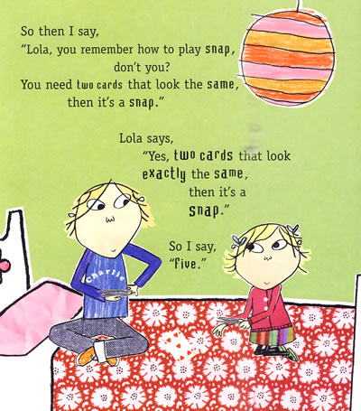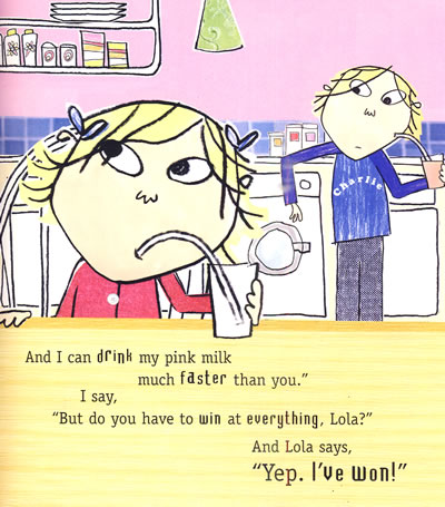 Lola always always always has to win! No matter what games sheand Charlie play, Lola always triumphs. What will happen whenCharlie devises a strategy for a game that surely he will win? Whenplaytime is through, Charlie and Lola have learned that maybehaving the upper hand isn’t as important as lending a hand when abrother or a sister could use a little help.