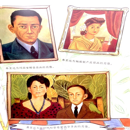 本书是适合4-6岁孩子阅读的儿童艺术启蒙绘本。 故事改编自墨西哥画家弗里达·卡罗的生平事迹。 小女孩一家都很喜欢画家弗里达·卡罗。弗里达受邀画了小女孩的奶奶、爸爸妈妈、哥哥姐姐,只剩下小女孩没有画像。终于等到了弗里达为下女孩画像的日子,小女孩来到弗里达的家。通过与弗里达的交流,她知道弗里达小时候因车祸受伤,通过绘画重拾生活勇气的故事。弗里达带她参观了自己的家,小女孩看到各种神奇的生物、美丽的画作。 本书从孩童的视角,介绍艺术大师弗里达·卡罗不为人知的一面,让小读者读后备受鼓舞,潜移默化地培养小读者坚强的人格,勇敢的品质。