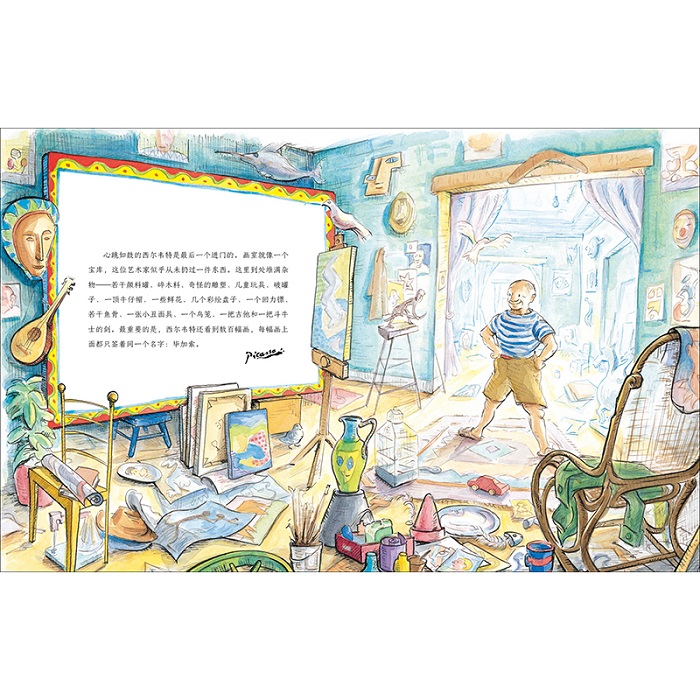 本书是适合4-6岁小朋友阅读的儿童艺术启蒙绘本。 故事取材自著名艺术家巴勃罗·毕加索的真实事迹。 从前,有一个小女孩名叫西尔韦特。她羞涩、内向、不自信,非常喜爱画画,但她从来不敢把自己的画拿出来给人看。当她被当时已经闻名世界的毕加索选为模特时,她几乎不敢相信。西尔韦特身上非比寻常的美给了毕加索无限的灵感,他以西尔韦特为模特创作了大量作品。而从小失去父亲的西尔韦特,也在毕加索身上感受到了深深的父爱。在毕加索的感染和引导下,西尔韦特走出了不自信的童年,也成长为了一位著名的艺术家。 书稿语言平实,优美流畅,将毕加索的形象刻画得真实细腻,将美术知识巧妙融于故事之中,让孩子在快乐中收获绘画知识。