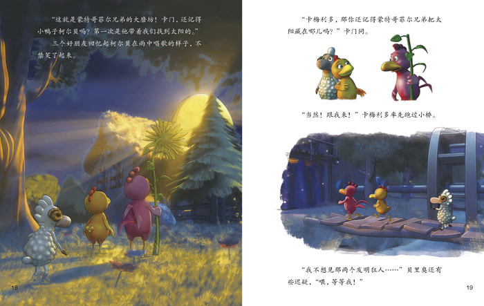 卡门和卡梅利多这两只不同寻常的小鸡,他们坚定地认为,“生活中肯定有比睡觉更好玩的事!”抱着这样的信念,他们不想和大家一样整天待在鸡窝里,他们要离开鸡舍出去探险!