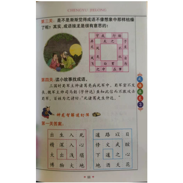 成语接龙是中国传统的文字游戏,有着悠久的历史和广泛的社会基础。为了能让孩子们更轻松地积累成语,我们编写了这套“成语游戏王国”,以娱乐化、游戏化的形式,为孩子们开辟了一条积累成语的捷径。