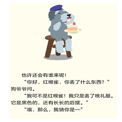 狗先生在失物招领处工作。他整天在那里等丢了东西的人来找他。先是一只鼻涕虫,不对,原来是丢了房子的蜗牛!看!一只小猫走过来。它丢了什么?原来是大狮子丢了保暖的围脖!大白熊找回了它丢了的耳套,眼镜,背心和靴子,原来是熊猫!