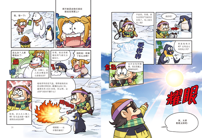 代表南极的帝企鹅和代表北极的北极熊为了争夺“抗寒王”的头衔,一起前往南极和北极考察,通过真真的博士和探险家阿蒙森的讲解,学习并了解极地的相关知识,如冰川的结构和种类、南极和北极的生态系统、南极和北极的差异等等。