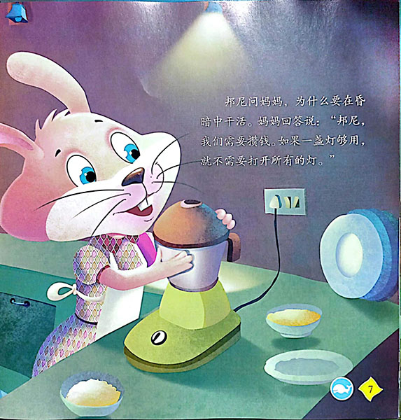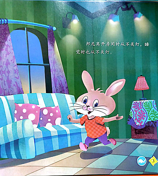 绘本是对幼儿教育的好形式,以其清新的画面,通俗的文字,活泼的风格,贴近幼儿实际的题材而深受幼儿喜爱,是对幼儿进行品德教育和良好习惯养成教育的启蒙读物。本书讲述了一个富有教育意义的幼儿故事。兔子邦尼喜欢在房间内亮着许多灯,而且总是不关它们,爸爸妈妈严肃地批评了她这种浪费的行为,邦尼认识到了自己的错误,开始向人们宣传如何节约用电。得到了大家的一致赞扬。建议家长引导阅读时发挥主观能动性,结合身边的例子来加深孩子的理解,树立正确的观念。建议家长引导阅读时发挥主观能动性,结合身边的例子来加深孩子对环境保护和爱护自然的意义的理解,树立正确的消费观念和环保观念。