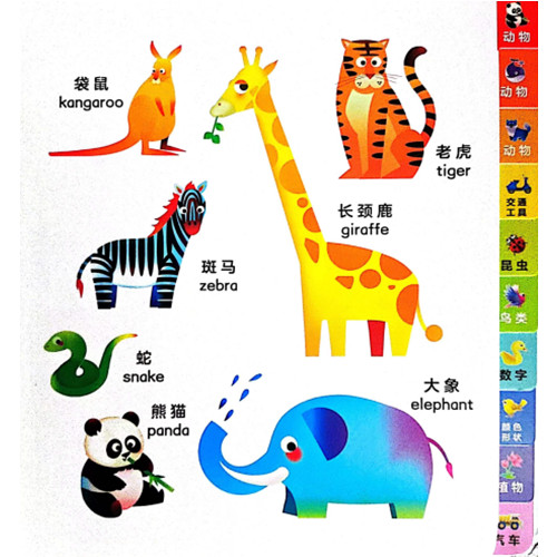 ★认知主题多维度 知识点丰富,共有超过涉及婴幼儿生活方面的500多个物品,按照场景设计分类陈列,主题清晰,认知目标明确。 ★双语阅读模式强 中英双语对照,可以作为英文启蒙读物,让孩子学习身边物品的英文表达,更可以当做小词典来查阅,认知学习两不误。 ★标签分类好处多 本套书设置了标签栏,每页均带有阅读分类标签,既让读者一目了然,又培养了孩子的归纳、分类与搜索能力。 ★工艺制作精良 专为0~4岁婴幼儿设计,超厚纸板,不易损坏;圆角设计,防止划伤。绿色环保印刷,呵护孩子健康。