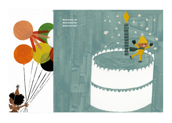 文字优美,富有韵律,画面色彩鲜亮,造型独特,富有童真。“我什么时候过生日呢?我的生日会在哪儿过呢?还有多久才到我的生日呢?”一个又一个问句符合孩子们爱发问的天性,之后的心愿描述又富有对生日的期待,纯真又质朴,不禁让大人们也为之回忆儿时的自己。