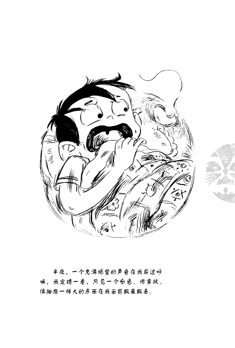 半夜,一个充满绝望的声音在我耳边呼唤,我定睛一看,只见一个白色、烟雾状、像拇指一样大的东西在我面前飘来飘去。