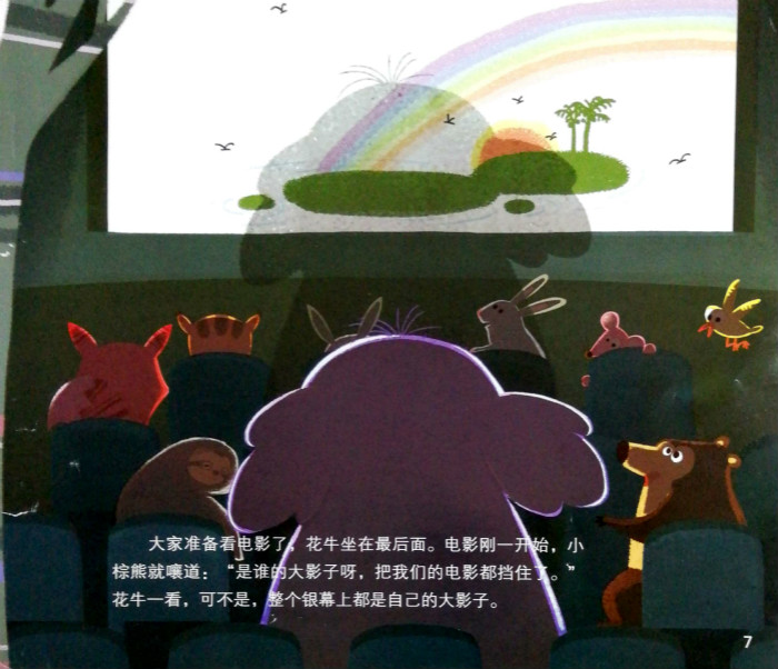 这是一个关于影子的故事。有一头小象,他的名字叫花牛,有着大大的身体,给邻居们带来很多方便,可是有的时候也会带来很多麻烦,于是花牛想要弄掉他的大影子,想了各种各校的办法,就是弄不掉……后来,他的大影子还救了他和他的伙伴们一命呢。