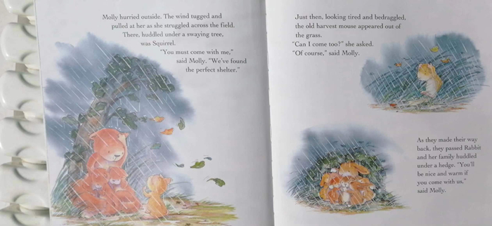Molly and the mice are caught in a storm.The other animals offer shelter but their nests are too high,too small or too crowded.At last the mice find a safe place but Molly can't settle.She is worried about their friends.So she sets off into the storm to find them...