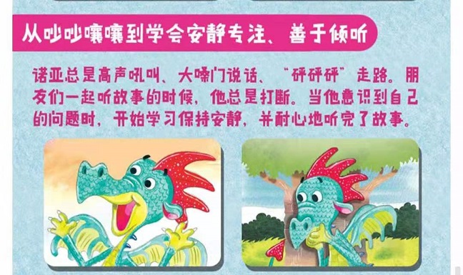 这是一套关于儿童情绪管理与性格培养的绘本,共包含四册,一册一个主题,通过四只小恐龙之间妙趣横生的故事,探讨了礼貌和行为的重要价值。《和无礼说再见》讲述的是粗鲁的露比的故事,她爱推推搡搡,总是不顾及其他恐龙的感受,最后她能意识到自己的鲁莽,做个有礼貌的恐龙吗?《谁来指挥比赛》讲述的是布兰登总喜欢号令别人,想让朋友们什么事情都听他指挥,要举行恐龙本领大比拼了,伙伴们都在练习比赛技术,这一次布兰登能明白指手画脚不会让事情变得更好吗?《嘘,安静点》讲述的是一只爱吵闹的恐龙诺亚的故事,他总是大声说话、跺着脚走路,总是喜欢打断别人,听故事的时候也不安静,最后他能意识到自己的问题吗?这是一套关于儿童情绪管理与性格培养的绘本,共包含四册,一册一个主题,通过四只小恐龙之间妙趣横生的故事,探讨了礼貌和行为的重要价值。《和无礼说再见》讲述的是粗鲁的露比的故事,她爱推推搡搡,总是不顾及其他恐龙的感受,最后她能意识到自己的鲁莽,做个有礼貌的恐龙吗?《谁来指挥比赛》讲述的是布兰登总喜欢号令别人,想让朋友们什么事情都听他指挥,要举行恐龙本领大比拼了,伙伴们都在练习比赛技术,这一次布兰登能明白指手画脚不会让事情变得更