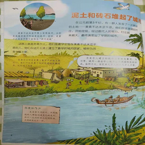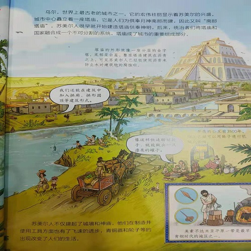 苏美尔人很会玩泥巴, 房子、书、瓶瓶罐罐……都是泥巴做的。 古埃及人喜欢修建金字塔和神庙,他们的文字像画一样刻在砖石上。 中国和古印度也热闹非凡, 一座座宏伟的建筑拔地而起,生活多姿多彩。 人类想要改变曾经野蛮的生活, 用一砖一石、一笔一画,创造出辉煌灿烂的古代文明。